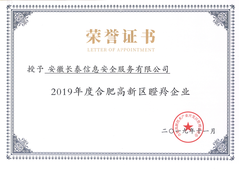 2019年,11月20日,合肥高新区2019年高成长企业榜单正式发布,高新区共认定了502家高成长企业,其中雏鹰企业275家、瞪羚培育企业72家、瞪羚企业149家、潜在独角兽企业3家、独角兽企业1家、平台型龙头企业2家。作为其中的高科技企业——安徽AOA在线登录官网-AOA(中国)成功入选瞪羚企业榜单。